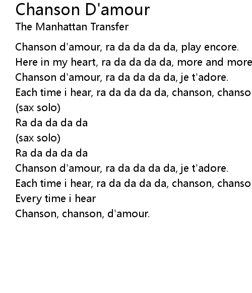 | Chanson d'amour, ra da da da da, play encore. | |
