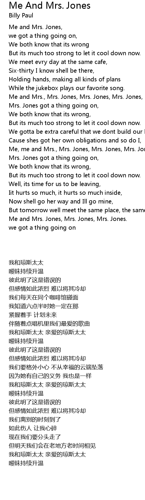 Me and Mrs., Mrs. Jones, Mrs. Jones, Mrs. Jones, |
