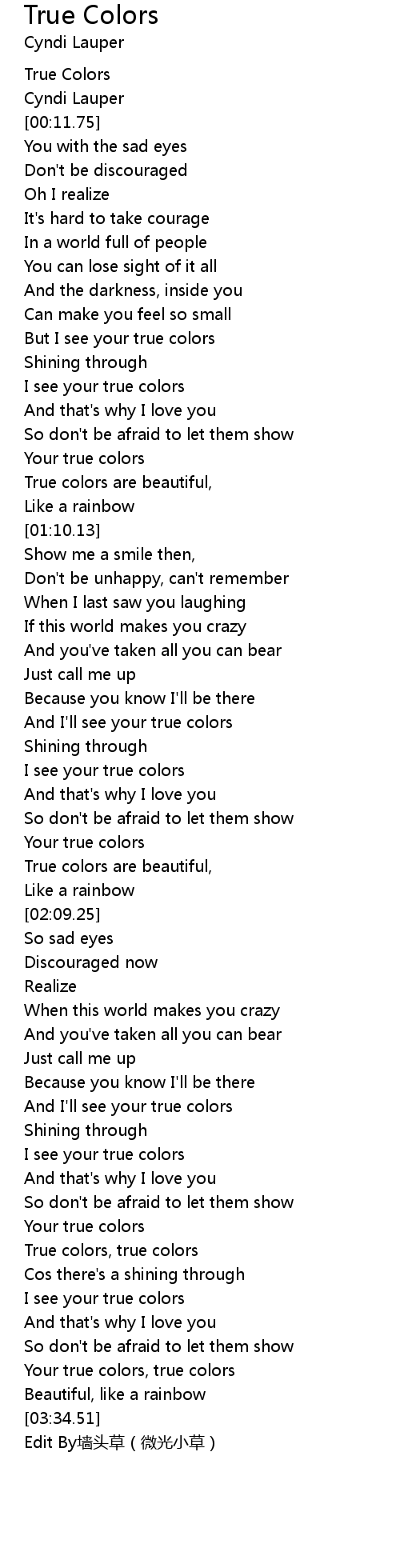 | [00:55.67] | Your true colors |