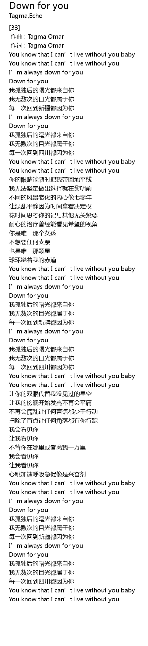 | [00:56.475] | You know that I can' t live without you baby |