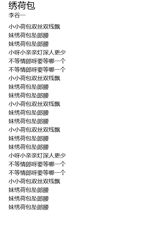 | [00:21.710] | 妹绣荷包坠郎腰 |