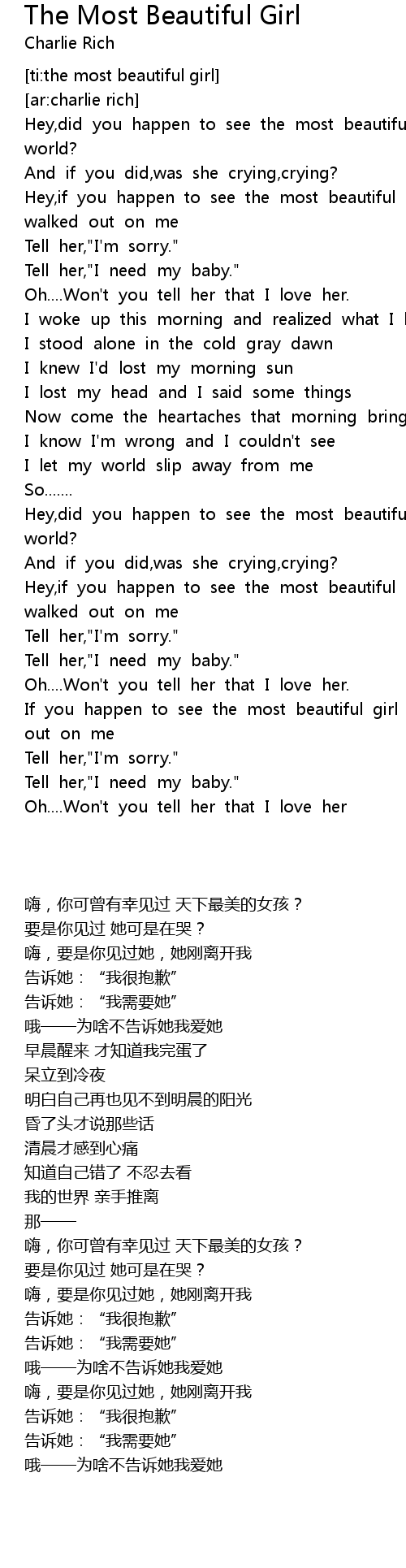 Hey,if you happen to see the most beautiful girl that walked out on me |