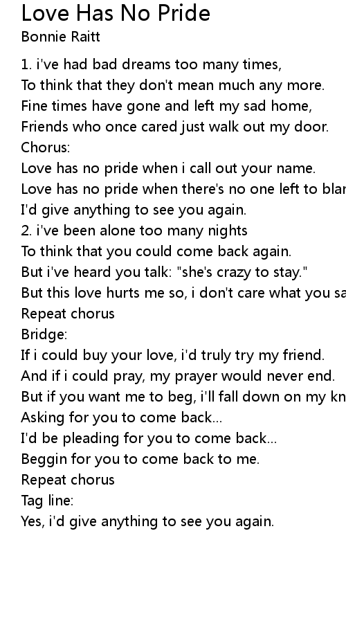 Love has no pride when i call out your name. |