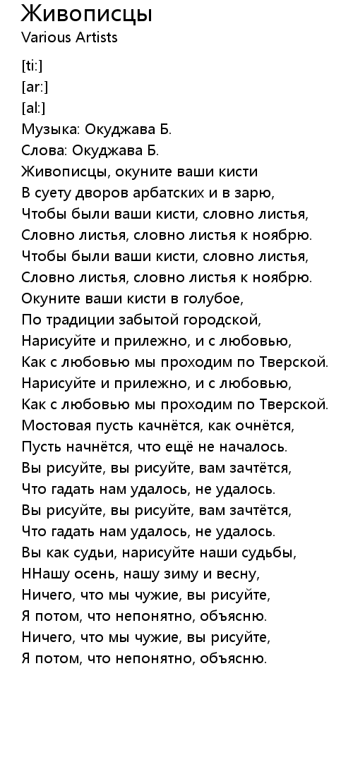 Живописцы  Lyrics