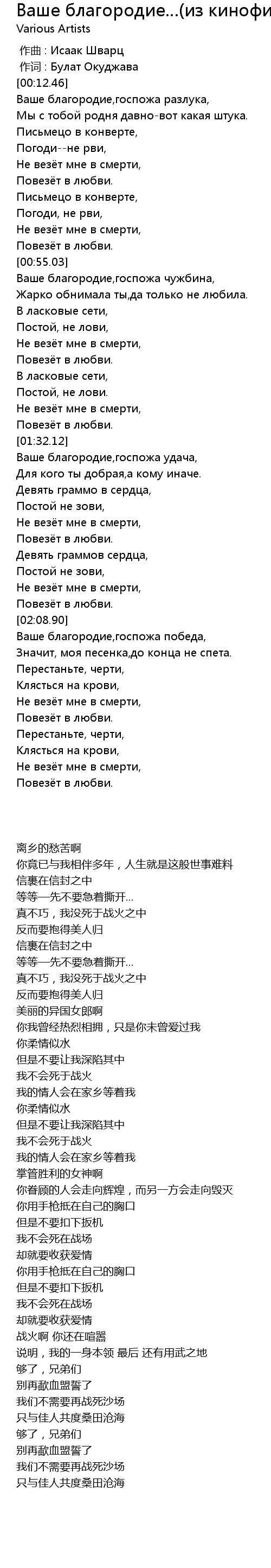 作词 : Булат Окуджава |