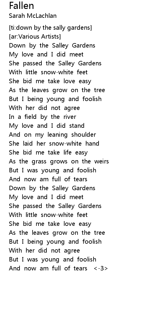 | [00:27.68] | She passed the Salley Gardens |