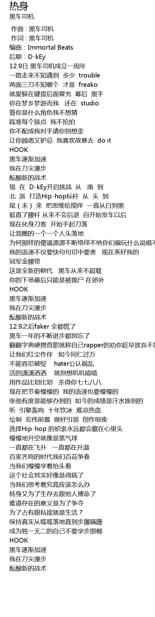 | [00:00.905] | 作词 : 黑车司机 |