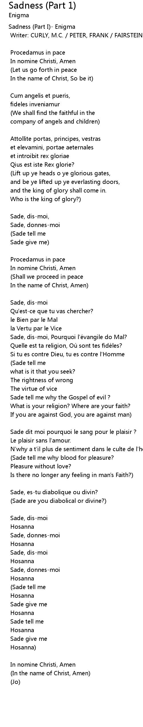 | Sade, dis-moi, Pourquoi l'évangile do Mal? | |