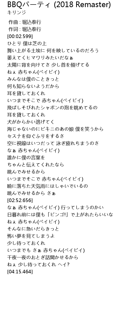 | [02:33.482] | いつまでそこで 赤ちゃん(ベイビイ) |