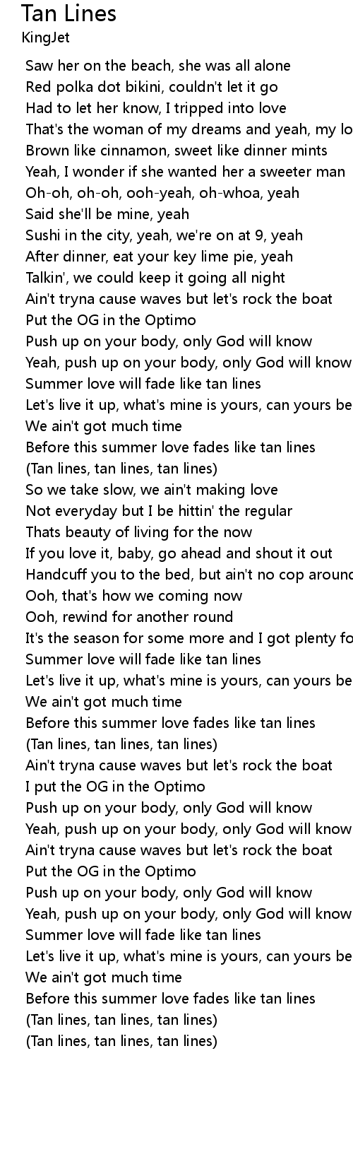 | [01:33.401] | (Tan lines, tan lines, tan lines) |