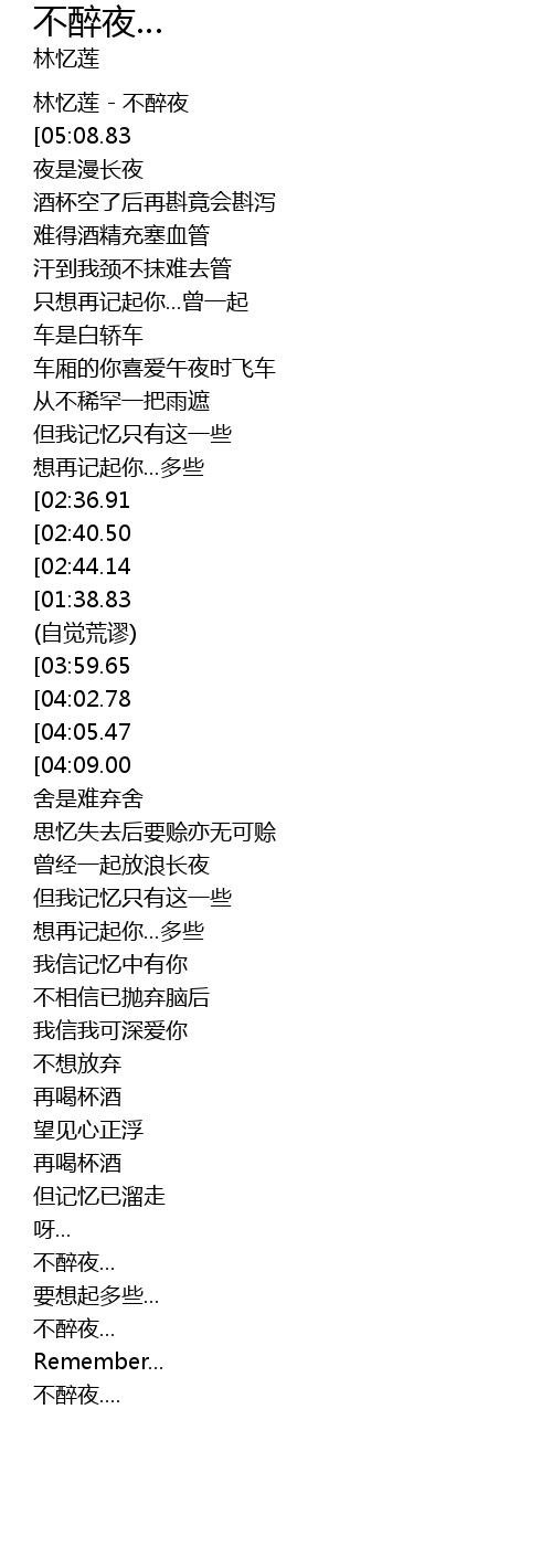 | [00:01.85] | 林忆莲 - 不醉夜 |
