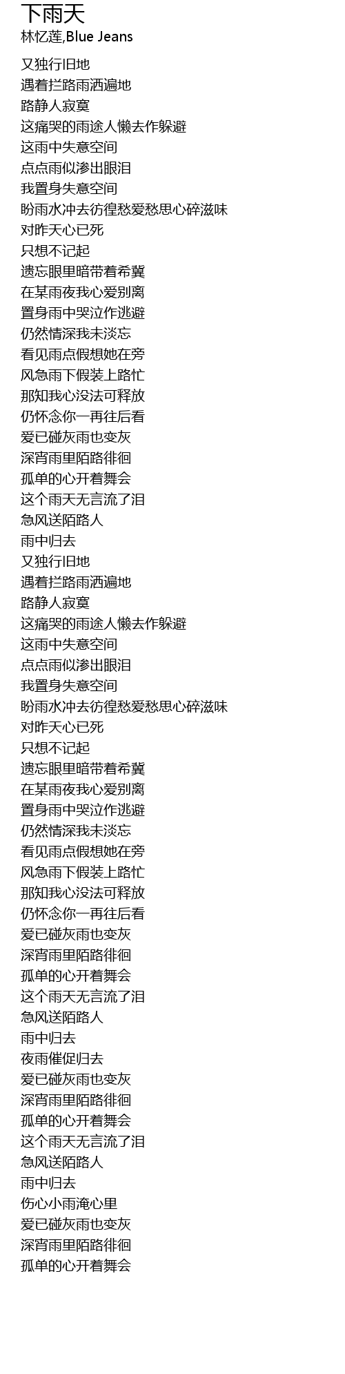 | [04:32.329] | 伤心小雨淹心里 |