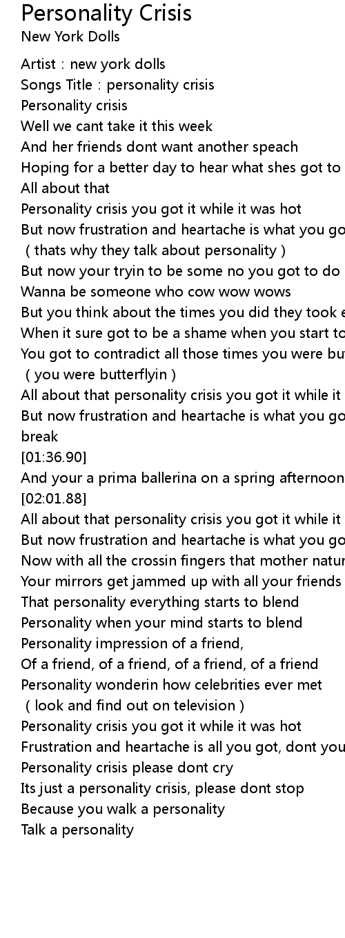 | [00:38.53] | Personality crisis you got it while it was hot |