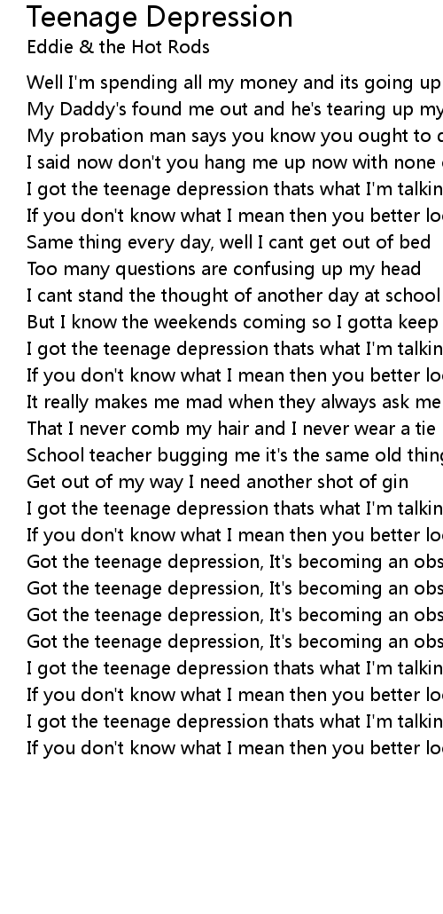 Got the teenage depression, It's becoming an obsession |