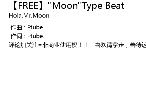 | [00:00.699] | 评论加关注=非商业使用权!!!喜欢请拿走,善待这些Beat,无水印私信!!!!! |