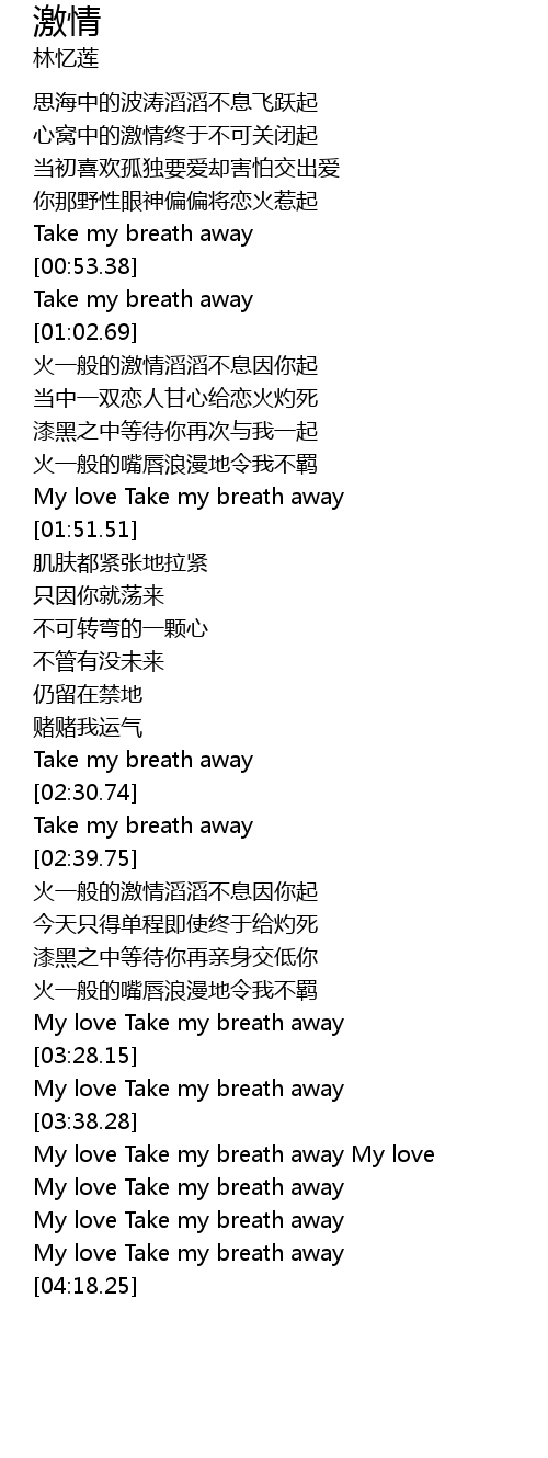 | [00:48.45] | Take my breath away |