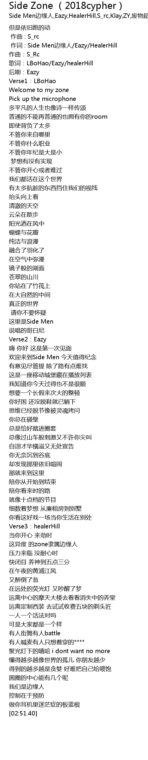 | [00:01.000] | 作词 : Side Men边缘人/Eazy/HealerHill |