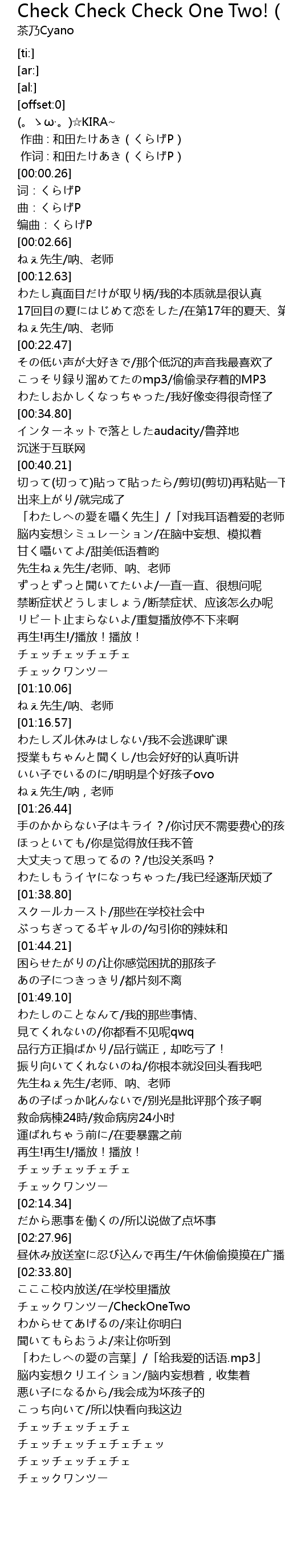 | [02:37.83] | チェックワンツー/CheckOneTwo |