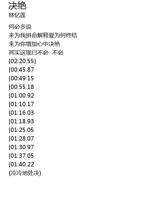| [03:17.10][01:40.22] | 你已独自将旧情处决 |