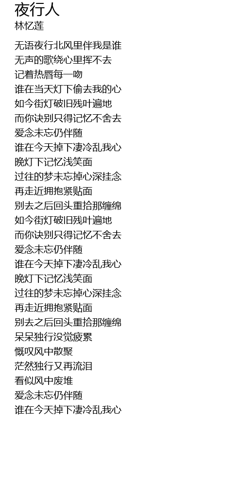 | [00:42.52] | 无语夜行北风里伴我是谁 |