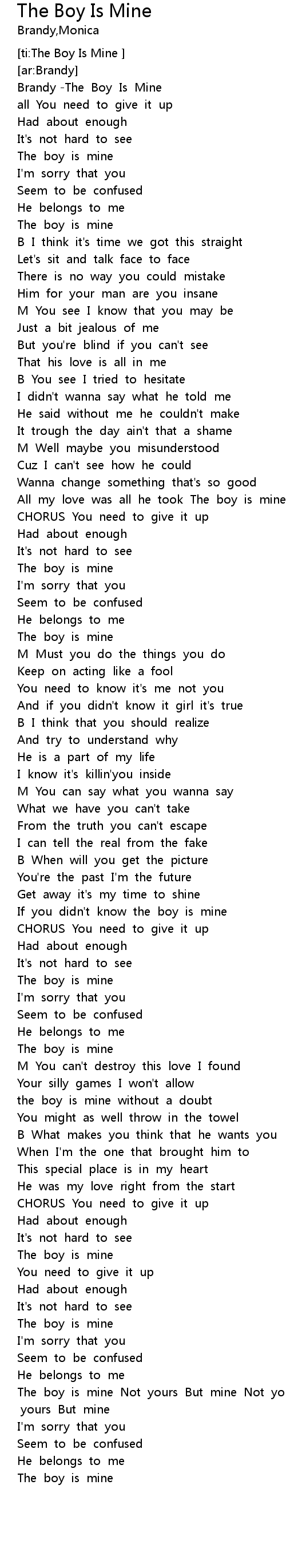 | [ti:The Boy Is Mine ] | |