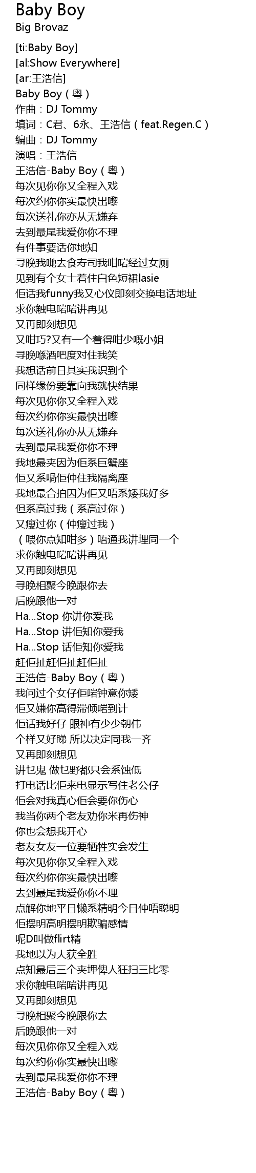 | [03:22.570] | 王浩信-Baby Boy(粤) |