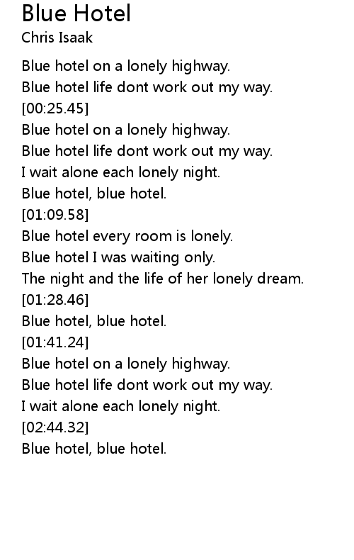Blue hotel every room is lonely. |