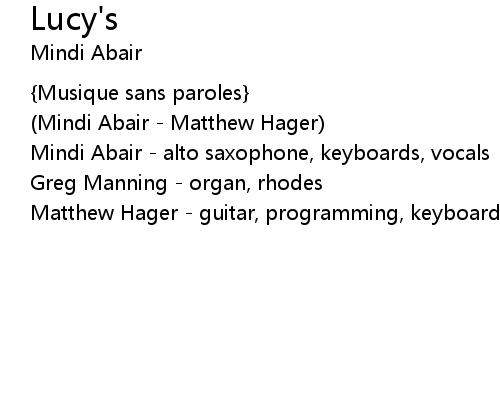 | Mindi Abair - alto saxophone, keyboards, vocals | |