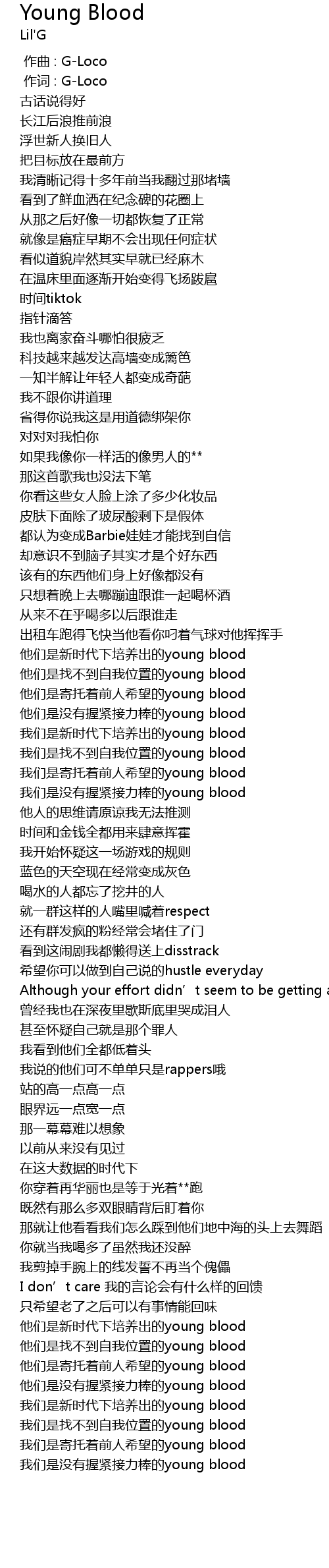 | [03:20.931] | 我们是新时代下培养出的young blood |