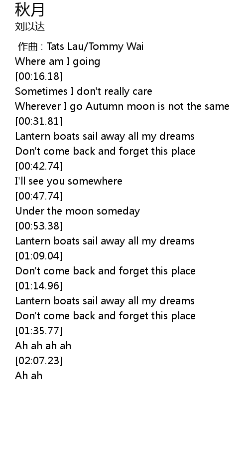 | [00:22.10] | Wherever I go Autumn moon is not the same |