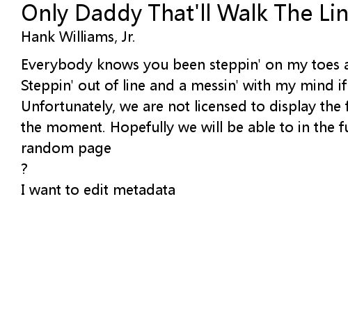| Song | Only Daddy That'll Walk The Line |