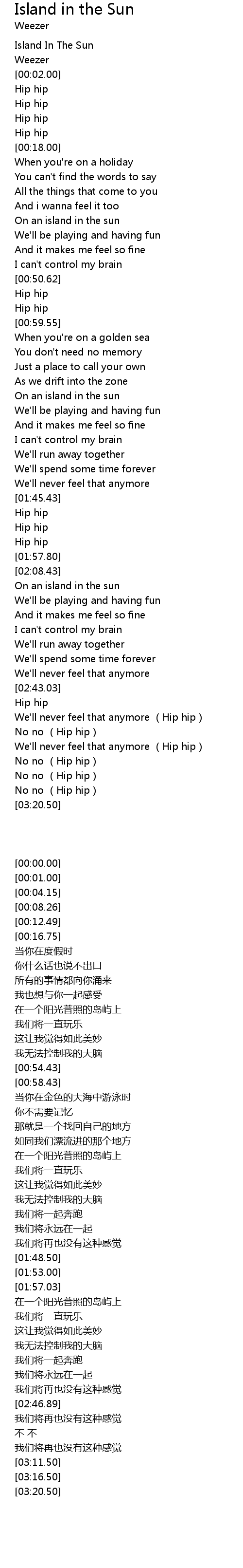 | [02:16.40] | On an island in the sun |