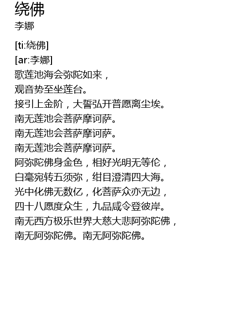 | [02:30.338] | 南无西方极乐世界大慈大悲阿弥陀佛, |