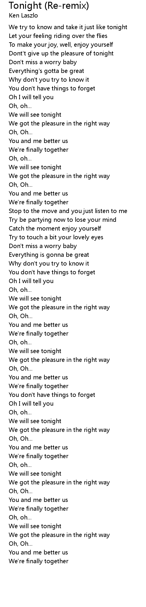 We try to know and take it just like tonight |