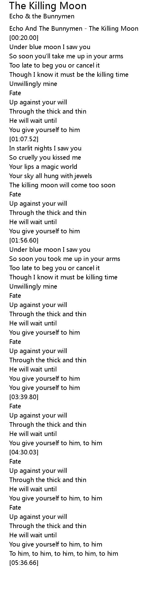 The killing moon will come too soon |