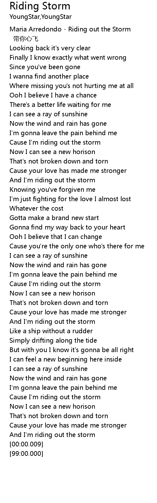 | [00:00.85] | Maria Arredondo - Riding out the Storm |