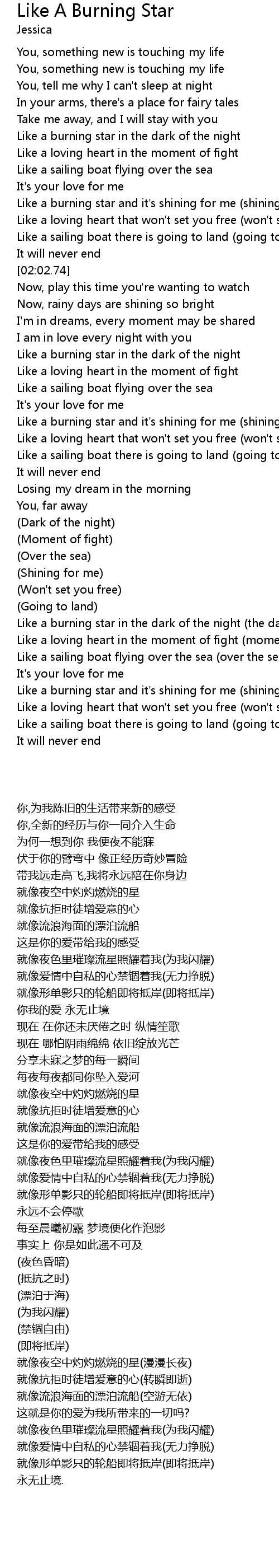 Like a burning star in the dark of the night |