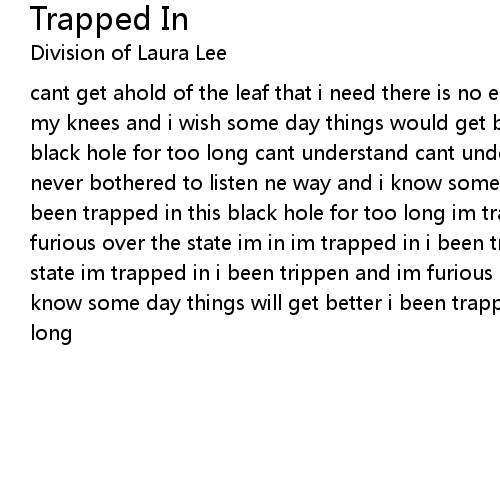 cant get ahold of the leaf that i need there is no end to the to streets im on my knees and i wish some day things would get better i been trapped in this black hole for too long cant understand cant understand the word of what u say i never bothered to listen ne way and i know some day things will get better i been trapped in this black hole for too long im trapped in i been trippen im furious over the state im in im trapped in i been trippen im furious over the state im trapped in i been trippen and im furious over the state im in and i know some day things will get better i been trapped in this black hole for too long |