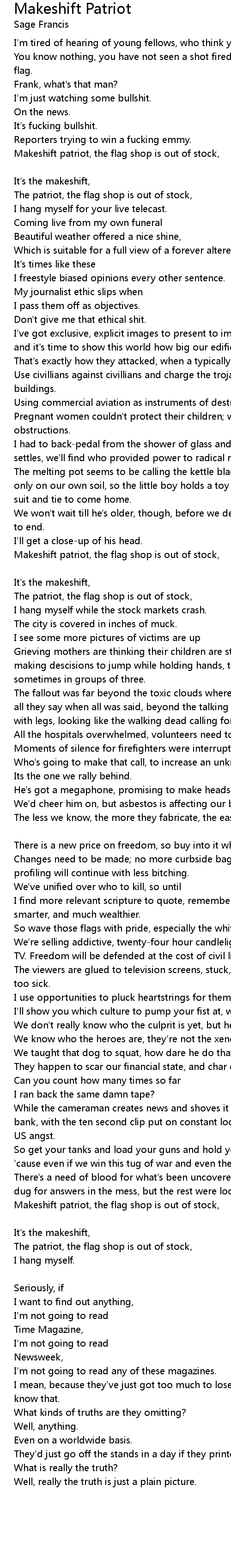 Makeshift patriot, the flag shop is out of stock, |