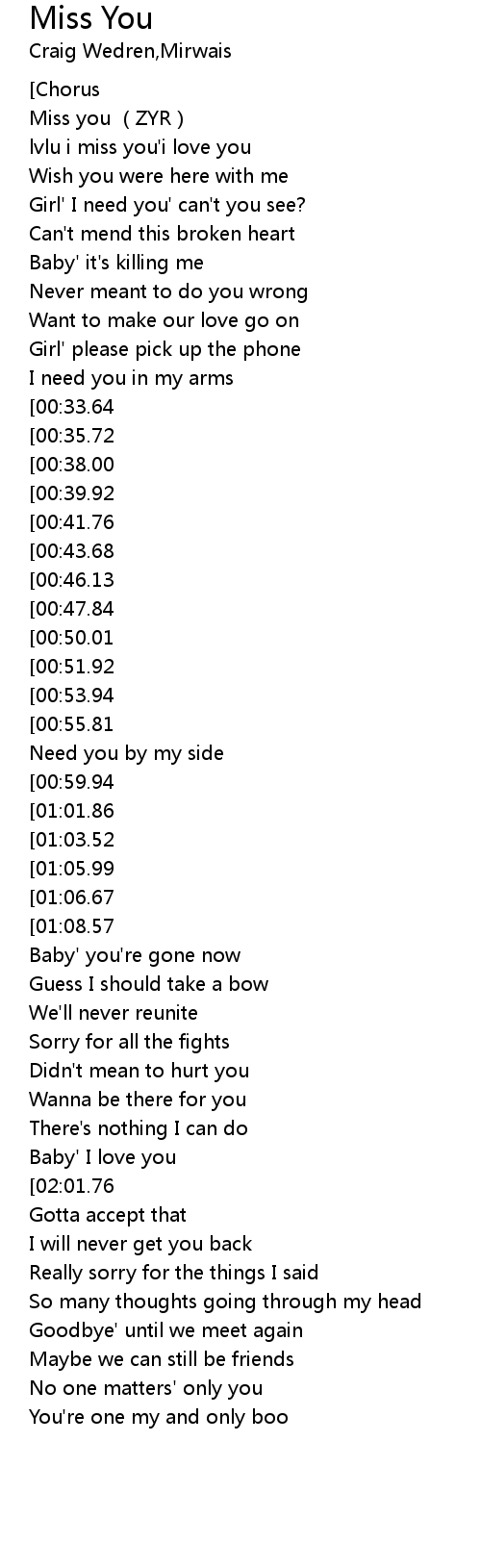 | [03:25.23][01:06.67] | Miss you |