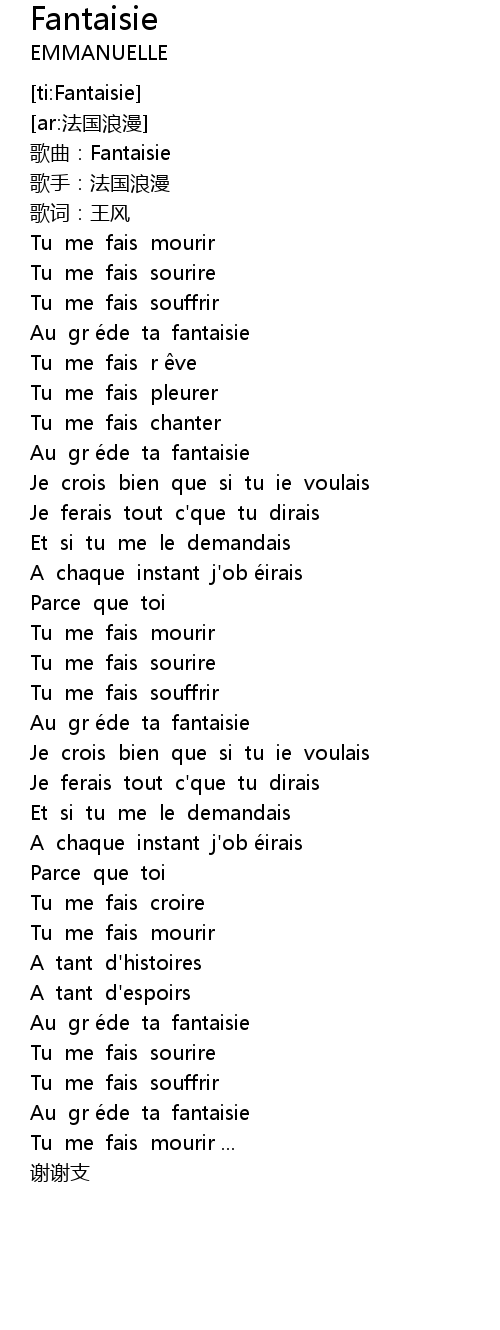 | [00:02.03] | gē shǒu: fǎ guó làng màn |