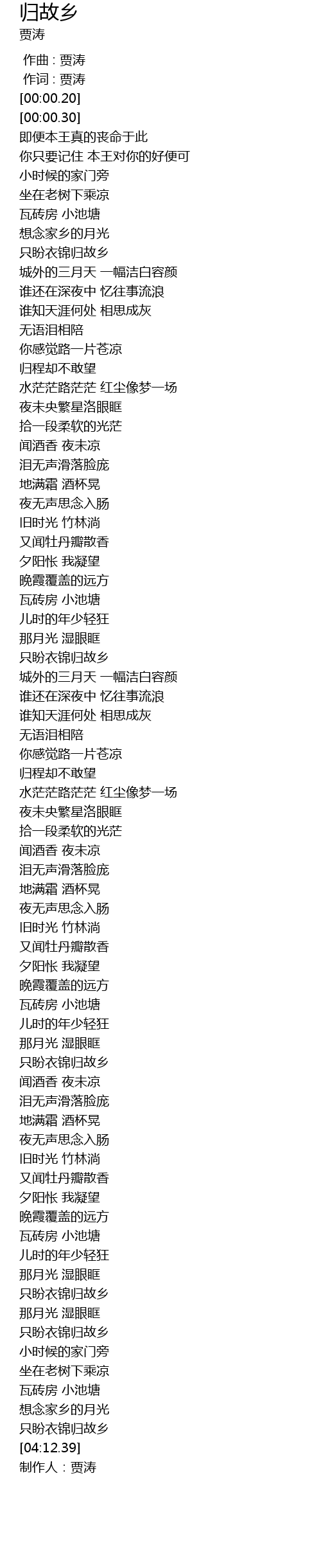 | [04:13.39] | 制作人:贾涛 |