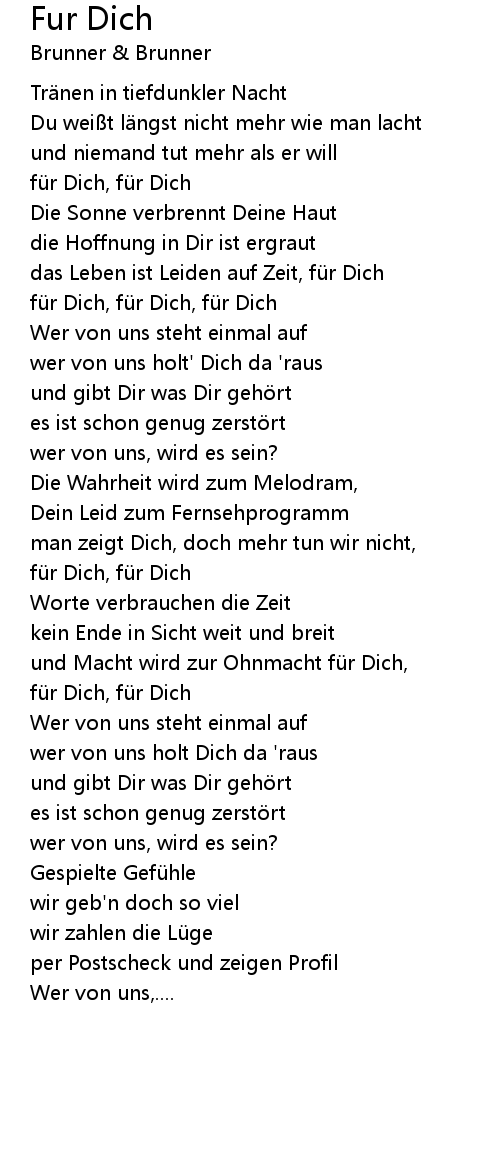| Du wei t l ngst nicht mehr wie man lacht | |