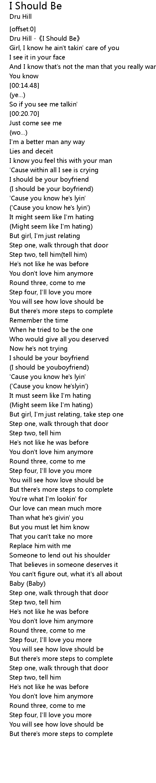 | [00:00.34] | Dru Hill -《I Should Be》 |