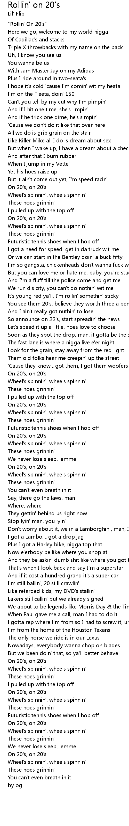 "Rollin' On 20's" |