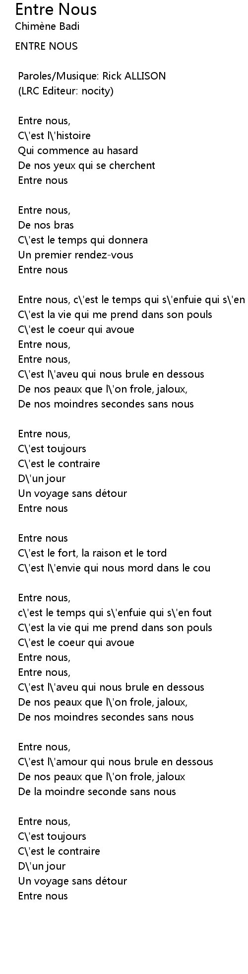 | Entre nous, c\'est le temps qui s\'enfuie qui s\'en fout | |