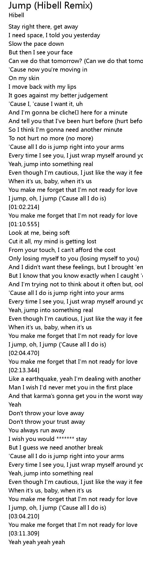 | [01:58.582] | I jump, oh, I jump ('Cause all I do is) |