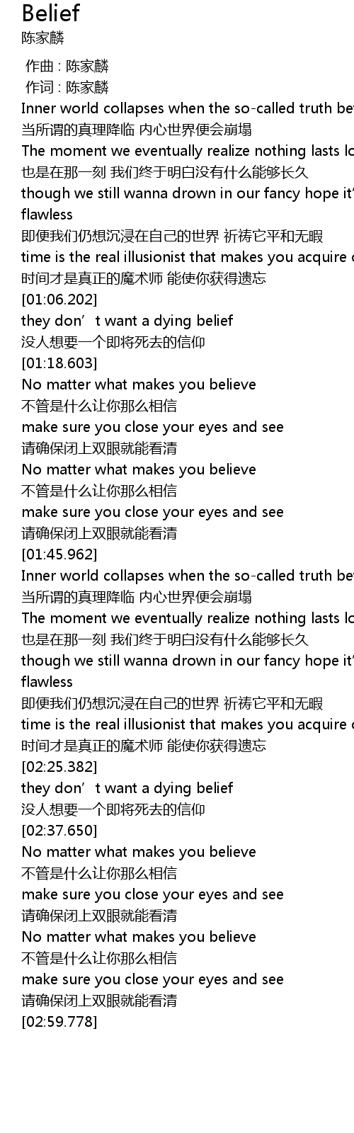 | Song | Belief |