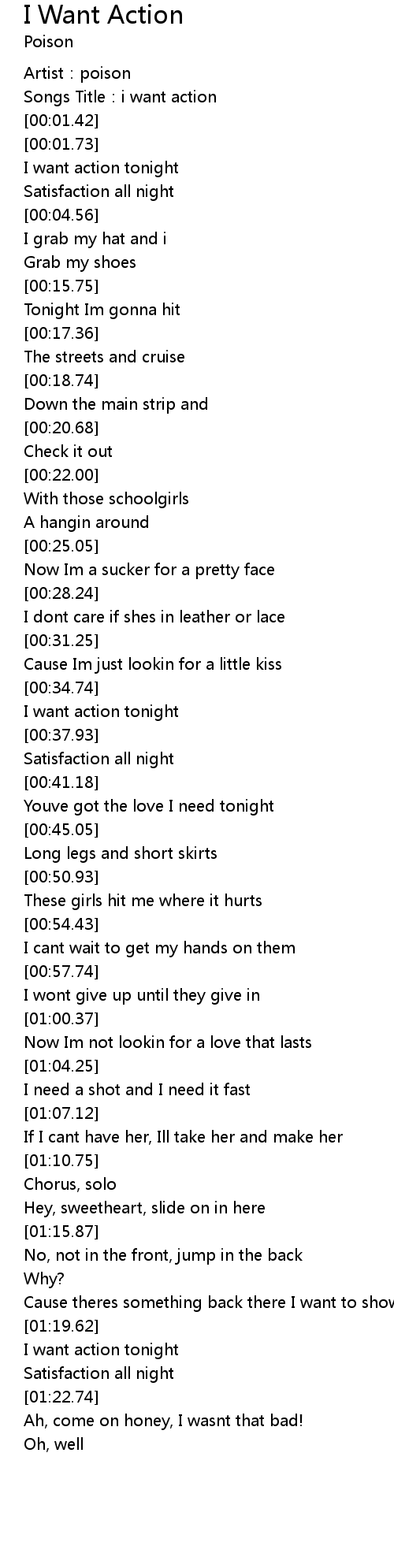 | [01:20.37] | I want action tonight |
