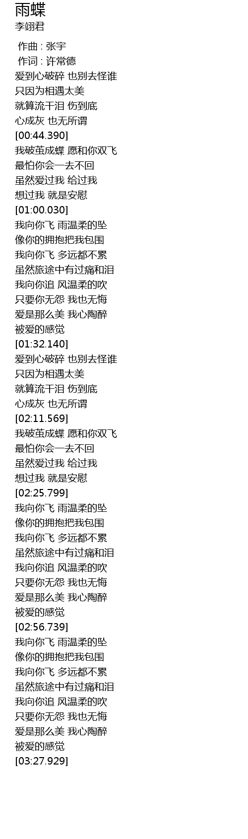 | [02:12.829] | 我破茧成蝶 愿和你双飞 |